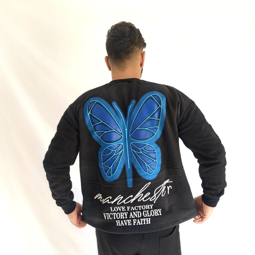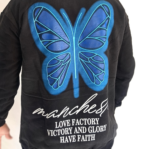 در قسمت جلو نوشتهی Manchester چاپ شده و در قسمت پشت طرح پروانه آبی بزرگ جلوهای خاص و متفاوت به استایل شما میدهد.