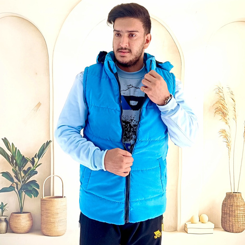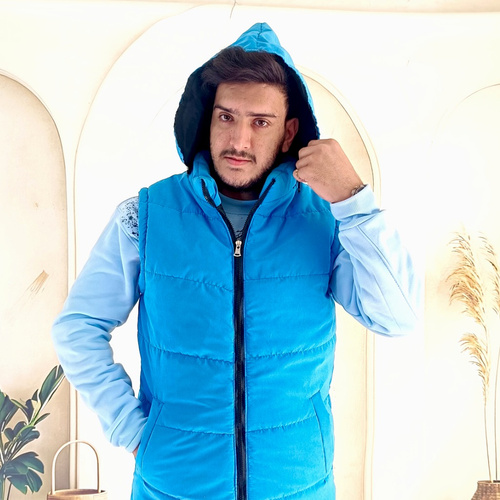 پافر مردانه، پافر ضد آب، پافر آبی روشن، پافر زمستانی، خرید پافر مردانه، پافر کلاهدار، پافر کلاه جداشونده، جلیقه ضخیم مردانه، پافر اسپرت